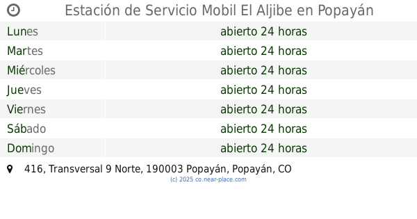 | Domingo | abierto 24 horas | |||||