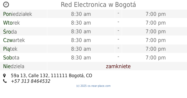 🕗 godziny otwarcia